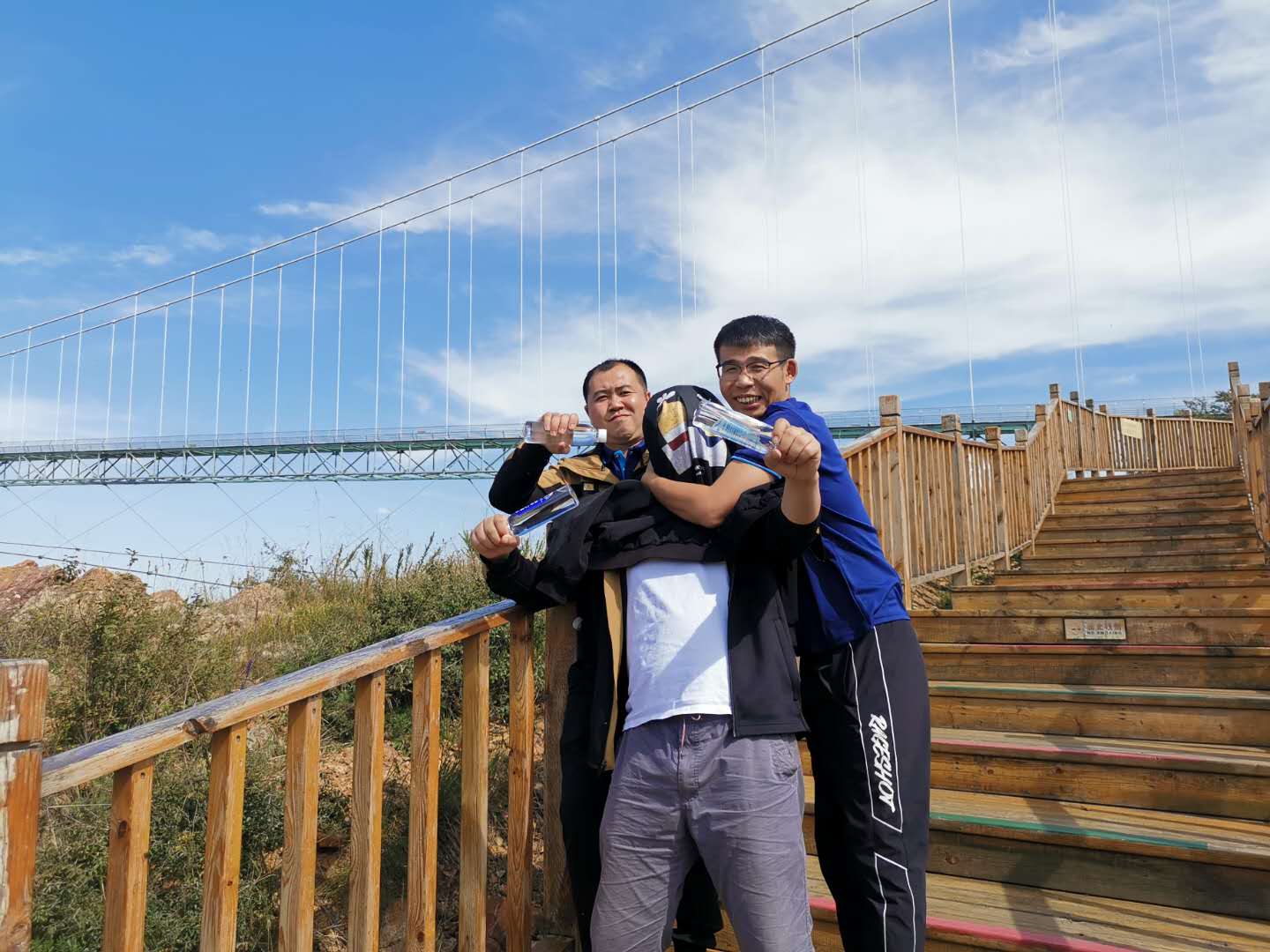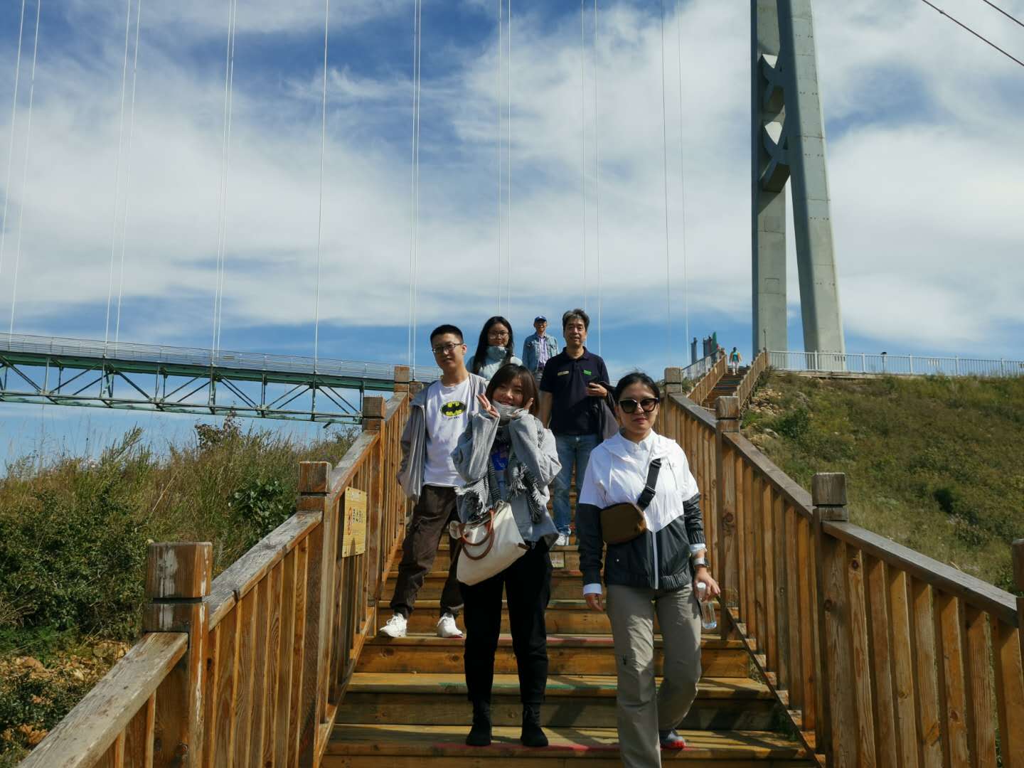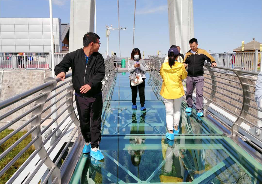 14日下午游覽車(chē)載著一行人行駛在山間的小路上,清風(fēng)徐徐,好不愜意,接著迎來(lái)了全長(zhǎng)639米的玻璃棧道挑戰(zhàn),驚心動(dòng)魄,姿態(tài)百出。